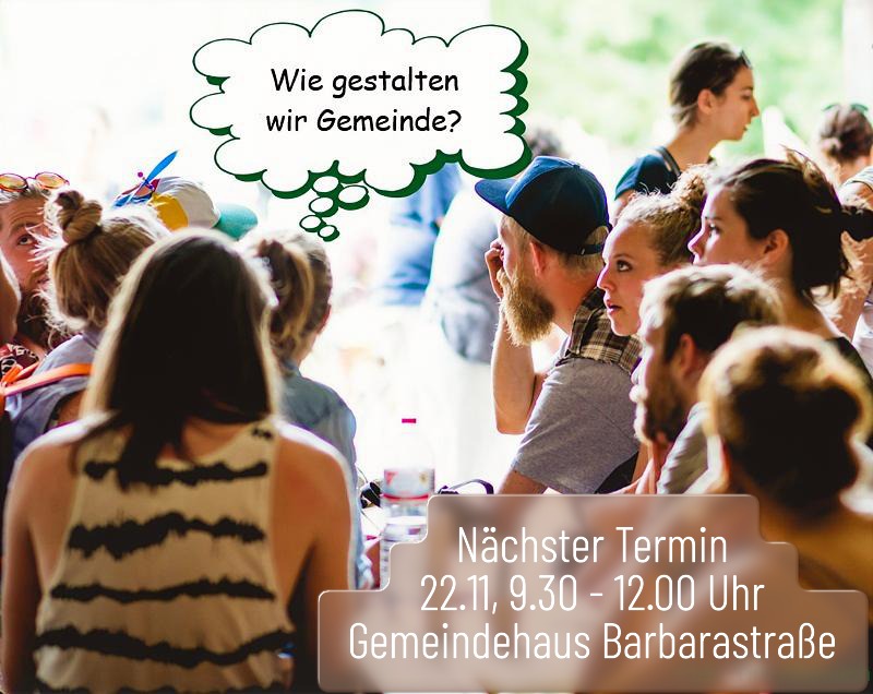 wir möchten jedes interessierte Gemeindemitglied zur Gemeindewerkstatt am Samstag, den 22.11. von 9.30 Uhr bis 12.00 Uhr in das Gemeindehaus auf dem Bühl (St. Barbarastraße) herzlich einladen.